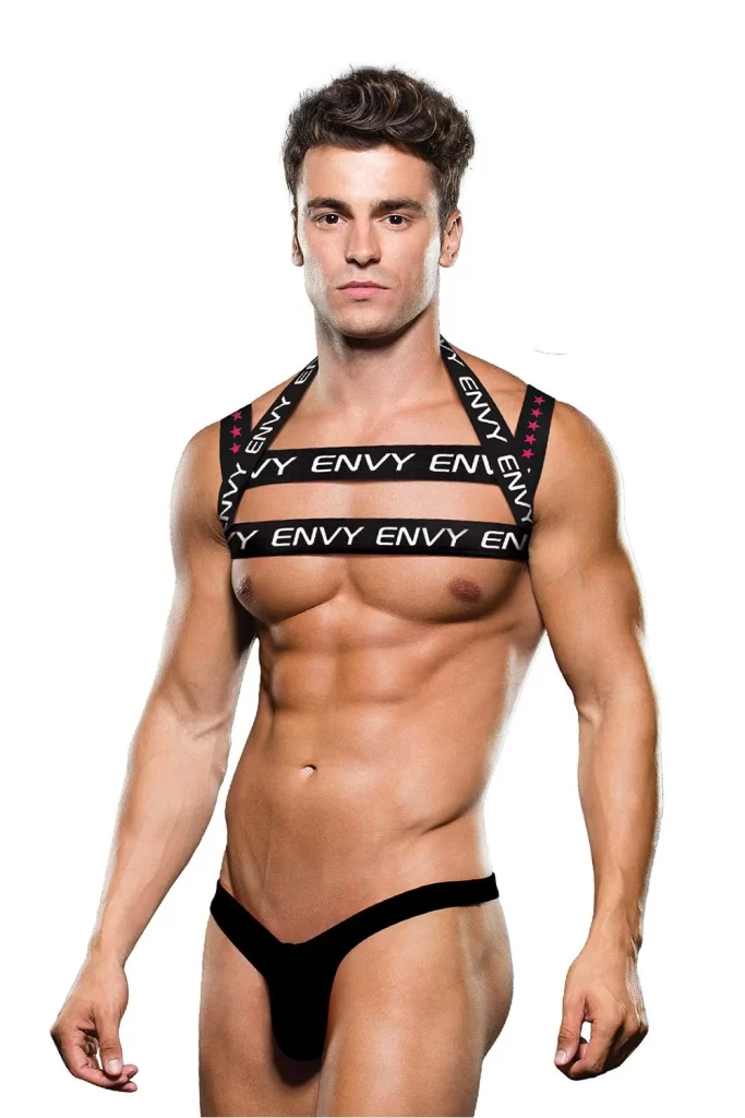 Za one trenutke kada želite nešto osnovno, ali s nadogradnjom, ENVY Menswear ima upravo ono što tražite! Tradicionalne (i nevjerojatno seksi!) crne tange niskog struka pružaju vam klasičan izgled, dok im odgovarajući crni, remenasti prsluk s upečatljivim crvenim dizajnom i istaknutim ENVY tekstom daje dozu odvažnosti.